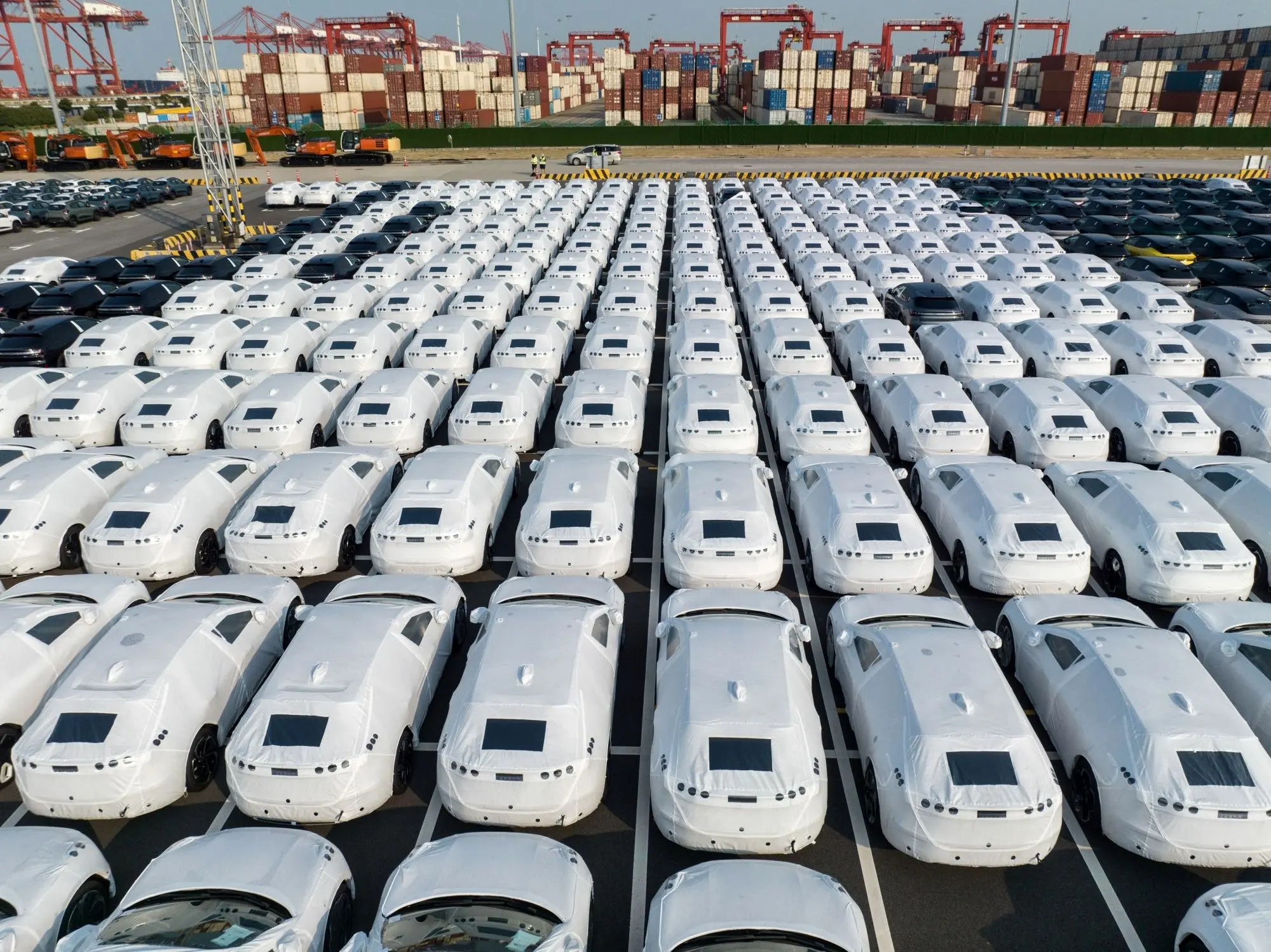 خودروهای الکتریکی چینی به مقصد اروپا در بندر تایکانگ چین