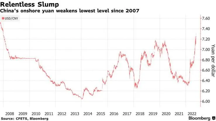 یوان به ضعیف ترین حالت خود از سال ۲۰۰۷ سقوط کرده ، در شرایطی که ایالات متحده به دنبال افزایش نرخ بهره و تقویت دلار است، چین نرخ بهره را افزایش نداده و بانک ها را مکلف به حمایت از سازندگان املاک و تولیدکنندگان کرده است. در این شرایط به نظر می رسد که بانک خلق چین مخالف کاهش ارزش یوان نیست و اجازه می دهد ارزش یوان در برابر دلار به کاهش خود ادامه دهد.