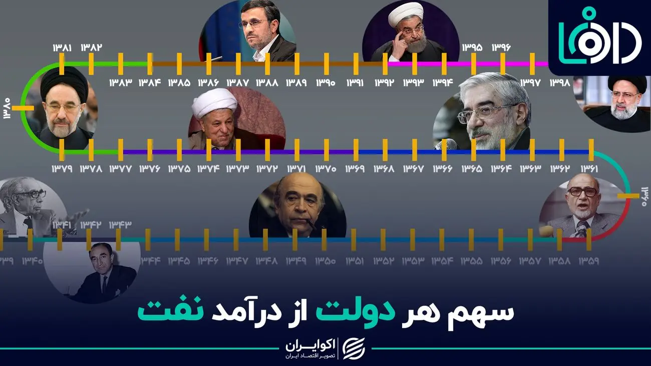 همچنین به ترتیب دهه طلایی ۴۰، دولتهای علی اکبر هاشمی رفسنجانی، حسن روحانی و سید محمد خاتمی کمترین سهم از سرانه درآمدهای نفتی تاریخ ایران را داشتهاند.