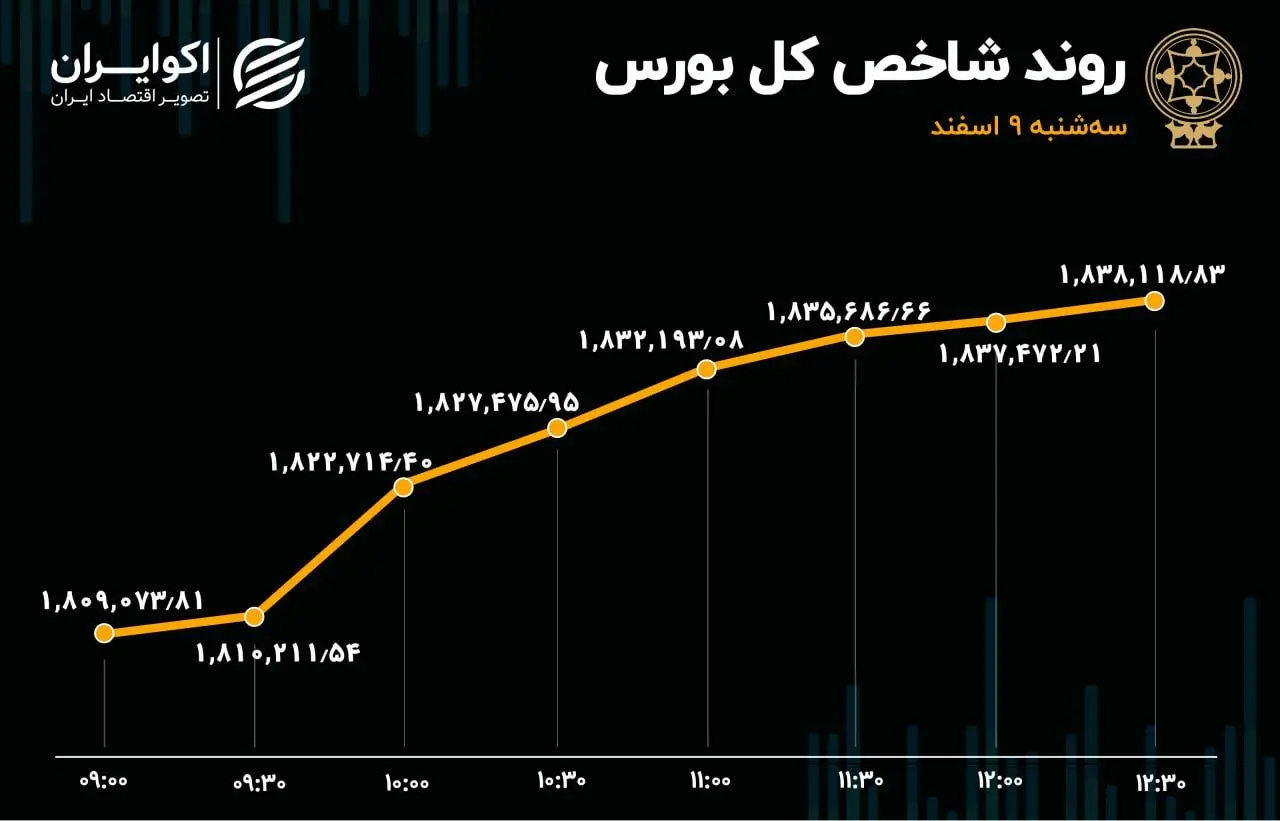 به گزارش اکوایران ، در معاملات روز سهشنبه 9 اسفند ماه، شاخص کل بورس از ابتدای معاملات صعودی شد و در ادامه نرخ رشد آن افزایش یافت. در نهایت در پایان معاملات شاخص کل در سطح یک میلیون و 838 هزار و 123 واحد قرار گرفت که نسبت به روز دوشنبه 29 هزار و 50 واحد رشد کرده است.