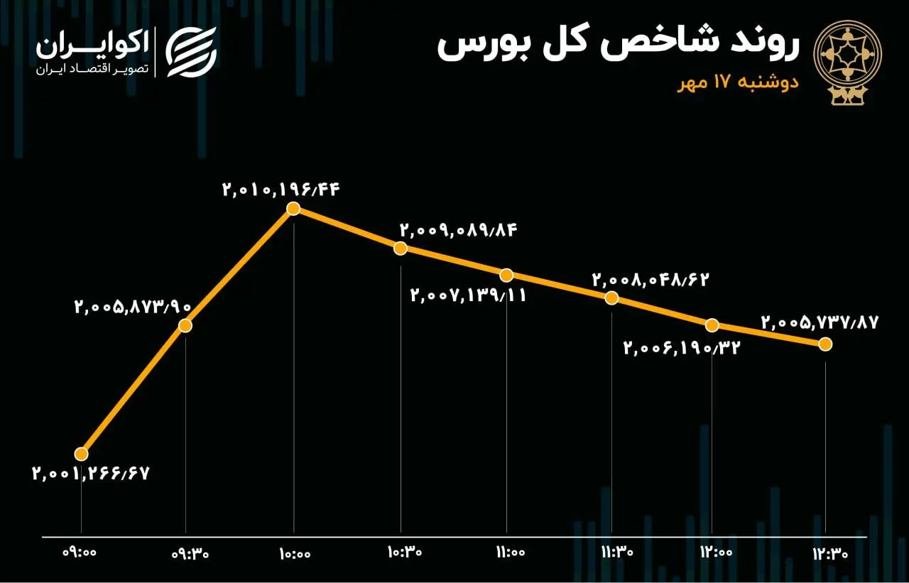 به گزارش اکوایران، در معاملات روز دوشنبه هفدهم مهر ماه 1402، شاخص کل بورس تهران 4 هزار و 470 واحد نسبت به روز کاری گذشته بالاتر ایستاد و به سطح 2 میلیون و 5 هزار و 737 واحد رسید.