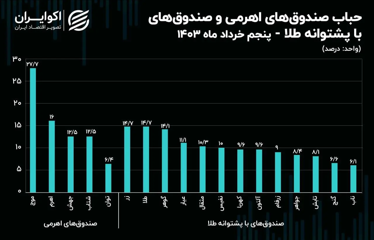 دیروز بالاترین حباب صندوق‌های اهرمی به صندوق موج با 27.7 درصد تعلق گرفت و پس از آن، صندوق اهرم با 16 درصد بیشترین حباب را به ثبت رساند. در بین صندوق‌های با پشتوانه طلا نیز، صندوق زر، روز گذشته با بیش از 14.7 درصد حباب در رتبه اول قرار گرفت و صندوق طلا نیز با 14.7 درصد حباب در رتبه دوم قرار داشت.