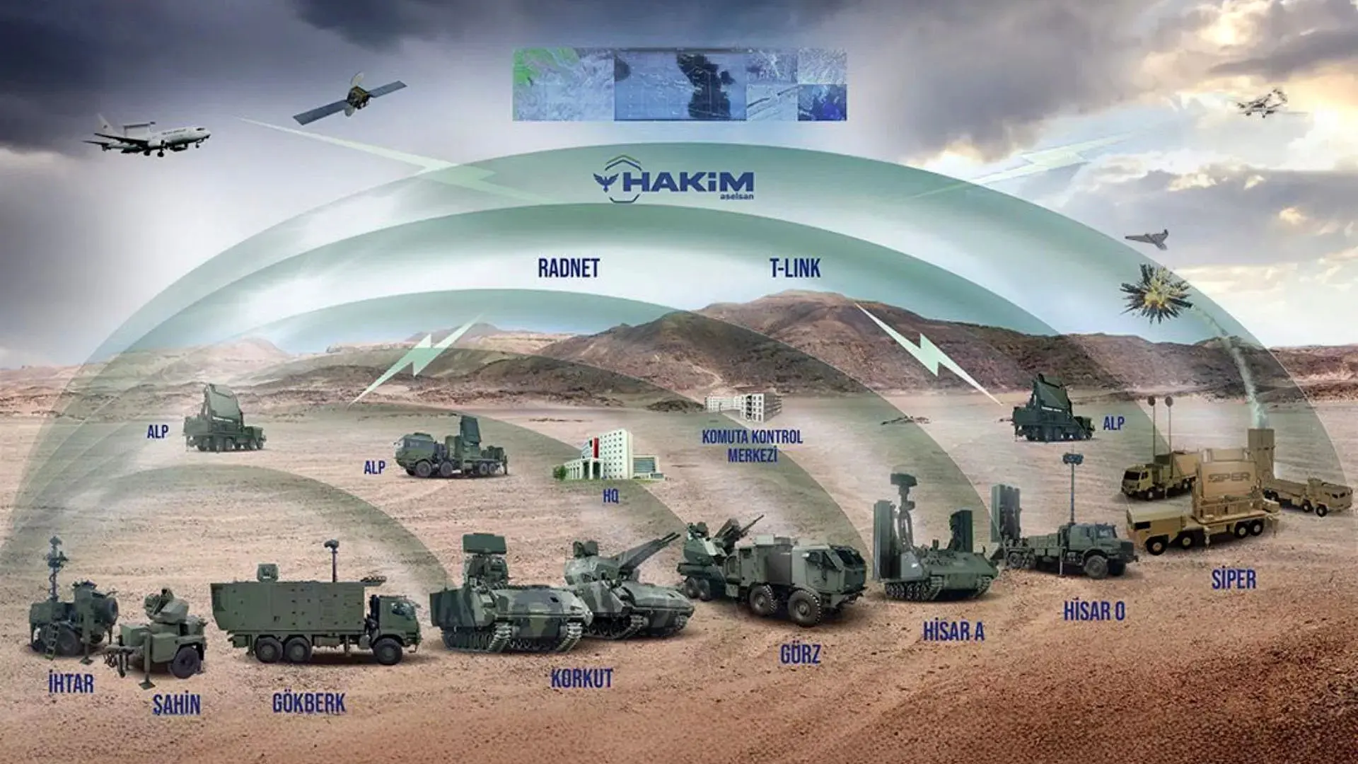یک نمایش گرافیکی از این سیستم نشان‌دهنده سیستم‌های دفاع هوایی متنوعی است که می‌توانند بخشی از گنبد فولادین باشند، از جمله HiSAR، SiPER و GURZ که از طریق سیستم مدیریت پیوند راداری RADNET متصل شده و از طریق سیستم فرماندهی و کنترل هوایی HAKiM کنترل می‌شوند. این نمایش گرافیکی همچنین نشان می‌دهد که این سیستم از طریق سیستم T-link به ماهواره متصل خواهد شد.