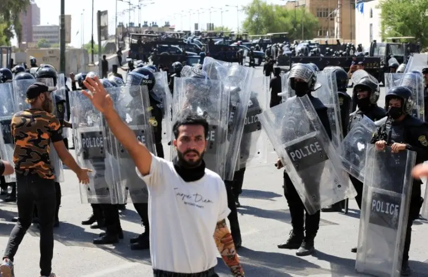 بنا بر گزارش الجزیره، در حالی که پارلمان عراق جلسه بررسی استعفای رئیس خود را برگزاری می‌کرد، هواداران مقتدی صدر، از رهبران پرنفوذ در عراق، تلاش کردند تا به منطقه سبز بغداد هجوم آورند. هواداران صدر روز چهارشنبه قبل از اینکه با پلیس ضدشورش مواجه شوند، تلاش کردند تا با عبور از نیروهای امنیتی محافظ پارلمان پیشروی کنند.