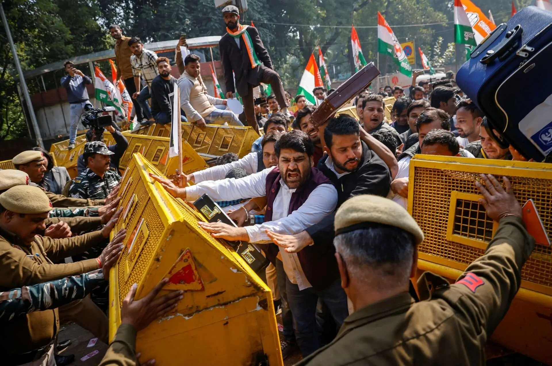 معترضان در محله جنتر دهلی‌نو که تظاهرات‌های پایتخت هند عموماً در آن‌جا برگزار می‌شوند، بنرهایی را در دست داشتند و شعارهایی علیه گوتام آدانی، بنیانگذار میلیاردر گروه آدانی سر دادند.