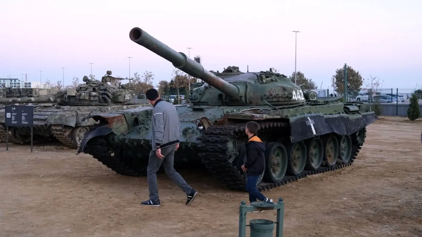 صدها کلاشینکف بهصورت مرتب کنار هم چیده شدهاند و سگی کنار نارنجکاندازها زوزه میکشد. تانکها، که بعضیشان آسیب دیدهاند، در افق کوهستانی تیره قرار دارند. سرگردی با لبخند گفت «کاپهای قهرمانیمان.»