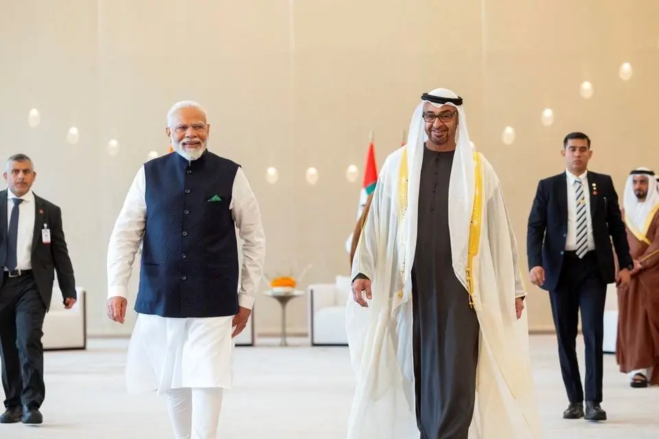 مودی با شیخ محمد بن زاید آل نهیان، رئیس امارات متحده عربی، که رهبر هند اغلب از او به عنوان برادرش یاد میکند، دیدار کرد.