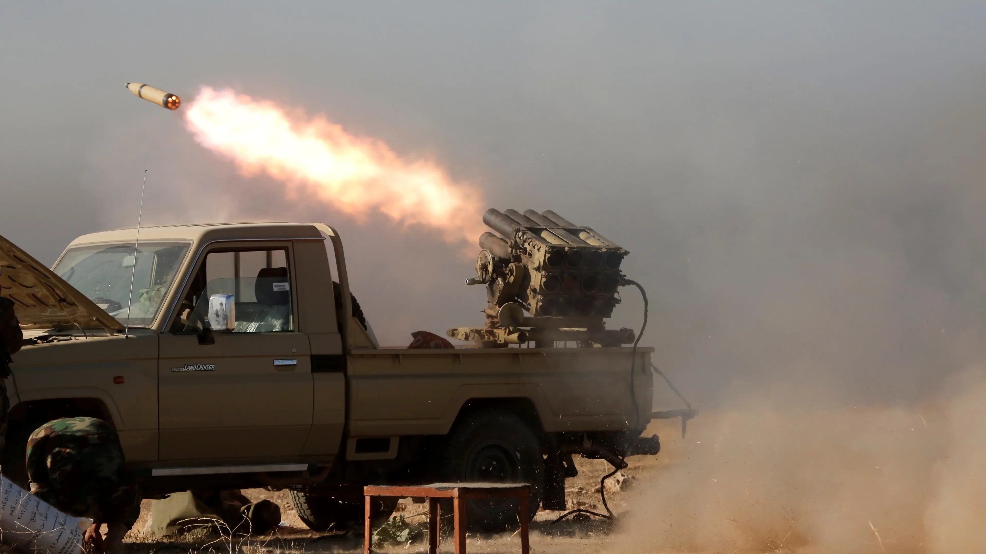 دو منبع امنیتی و یک افسر ارشد ارتش در عراق گفتند یک کامیون کوچک با یک راکت انداز در پشت آن در زمار، شهری در مرز با سوریه پارک شده بود.