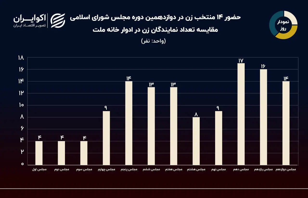 حالا بار دیگر تعداد نمایندگان زن حاضر در خانه ملت کاهش یافت و به 14 نفر رسید. در مرحله اول انتخابات دوازدهم مجلس، زنان موفق با کسب ۱۱ کرسی مجلس دوازدهم شدند که این تعداد در مرحله دوم با پیروزی سه زن به ۱۴ نفر رسید.