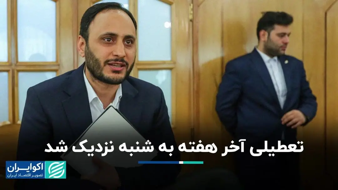سخنگوی دولت خبر داده پیشنهاد دولت این است که تعطیلات پایان هفته دو روزه شود و انتخاب روزهای آن در اختیار نظرات کارشناسی بخش‌های مختلف قرار بگیرد که به این ترتیب، به نظر می‌آید با اعتراض فعالان اقتصادی نسبت به تصمیم مجلسی‌ها برای تعطیلی پنج‌شنبه، دولتی نسبت به تغییر روز تعطیلی چراغ سبز را نشان داده.