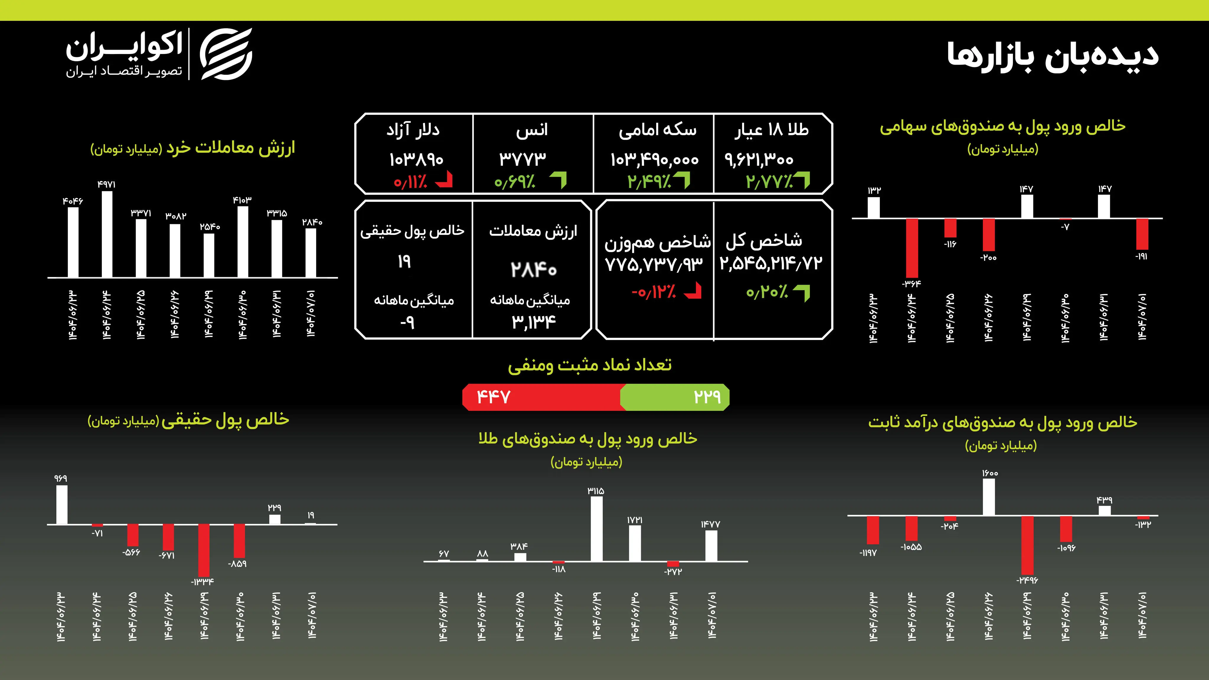 در جمعبندی نهایی، روز سهشنبه بار دیگر برتری پارادایم تورمی و تمایل شدید سرمایه به سمت داراییهای امن را به نمایش گذاشت. ورود پول کلان به صندوقهای طلا در کنار رکود نسبی بازار سهام، نشان میدهد که سرمایهگذاران استراتژی "پناهگیری در طلا" را در مواجهه با عدم قطعیتهای اقتصادی داخلی و جهانی در پیش گرفتهاند. به نظر میرسد این روند تا زمان ظهور یک محرک قوی برای تغییر بنیادین در انتظارات تورمی، کماکان تداوم خواهد داشت.