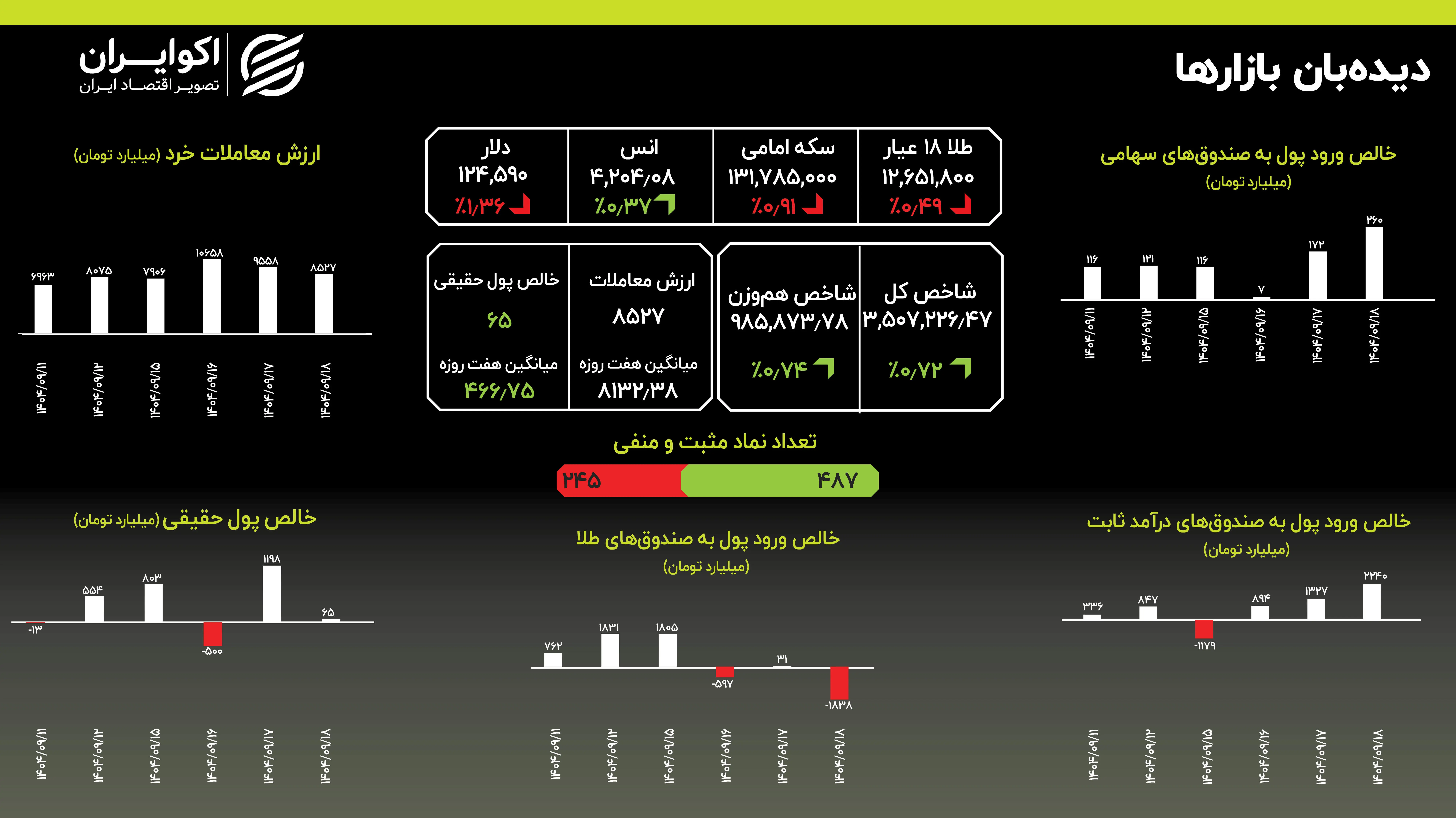 شاخص کل بورس تهران با رشد ۰.۷۰ درصدی خود را به سطح بی‌سابقه ۳,۵۰۷,۲۲۶ واحد رساند. این رشد اما انتخابی و متمرکز بود. محرک اصلی، خبر توافق بانک مرکزی با شرکت‌های فولادی و پتروشیمی برای عرضه ارز در بازار دوم با نرخ حدودی ۱۰۰,۰۰۰ تومان بود. این خبر دو اثر فوری داشت، ایجاد اطمینان نسبت به ثبات درآمد دلاری غول‌های صادراتی و تغییر کانون توجه از نوسانات بی‌ثبات کننده دلار آزاد به یک لنگر قیمتی قابل اتکا.