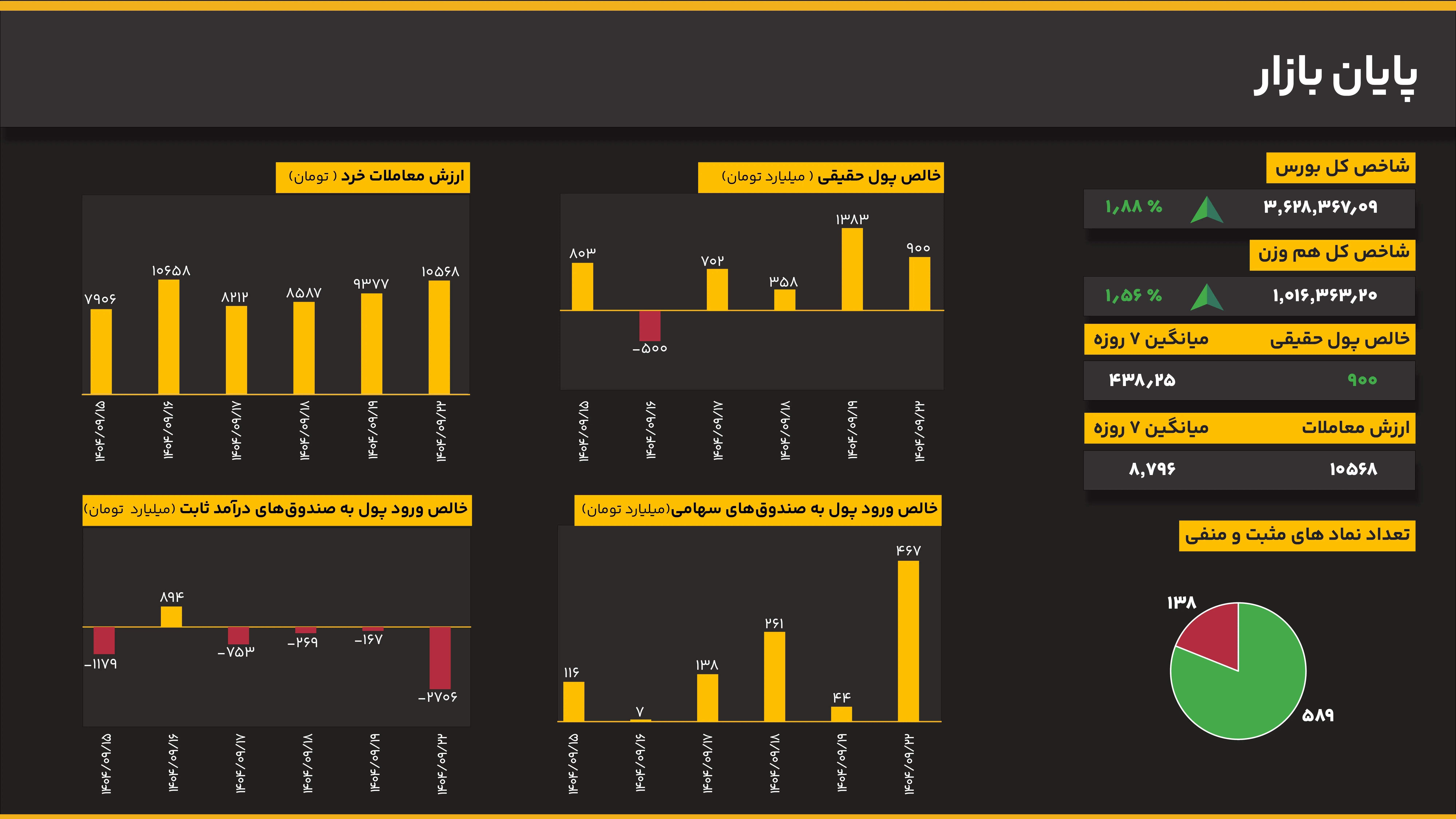 برجستهترین ویژگی امروز بازار، حجم بیسابقه معاملات خرد بود که به ۱۰ هزار میلیارد تومان رسید. این رقم که ۲۵ درصد بالاتر از میانگین هفتگی ۸ هزار میلیارد تومانی قرار دارد، نه تنها تمام نگرانیهای نیمه روز درباره کیفیت شکست مقاومت را برطرف کرد، بلکه نشان داد این صعود بر پایه تقاضای واقعی و مشارکت گسترده معاملهگران شکل گرفته است. حجم بالا در سطوح قیمتی جدید، معمولاً نشانهای از پذیرش این سطوح توسط بازار و کاهش احتمال بازگشت سریع قیمتها است.