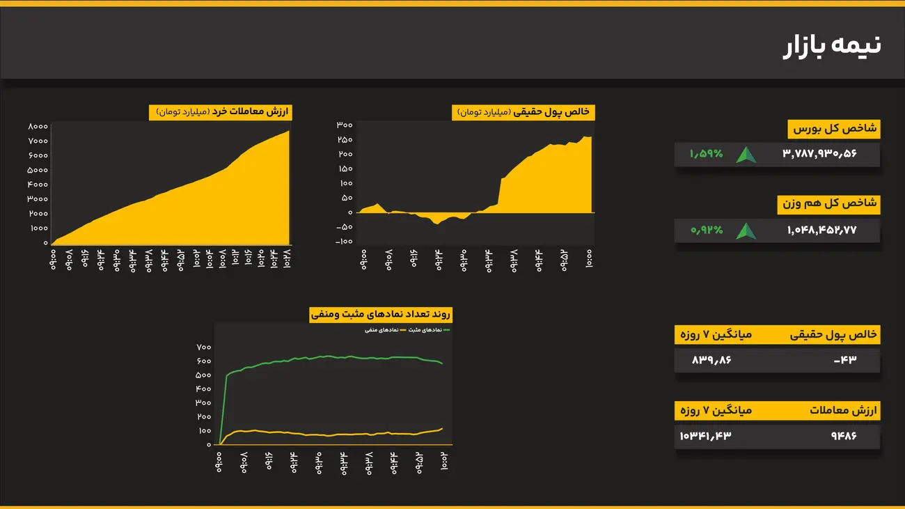 بر اساس داده‌های منتشرشده، ارزش معاملات خرد تا این زمان به ۹.۴ هزار میلیارد تومان رسیده که تقریباً هم‌سطح با میانگین هفتگی است. این حجم از معاملات در شرایطی ثبت شده که شاخص در حال شکستن یک مرز قیمتی جدید است و می‌توان آن را نشانه‌ای از مشارکت متعادل، اما نه خیره‌کننده، بازار دانست.