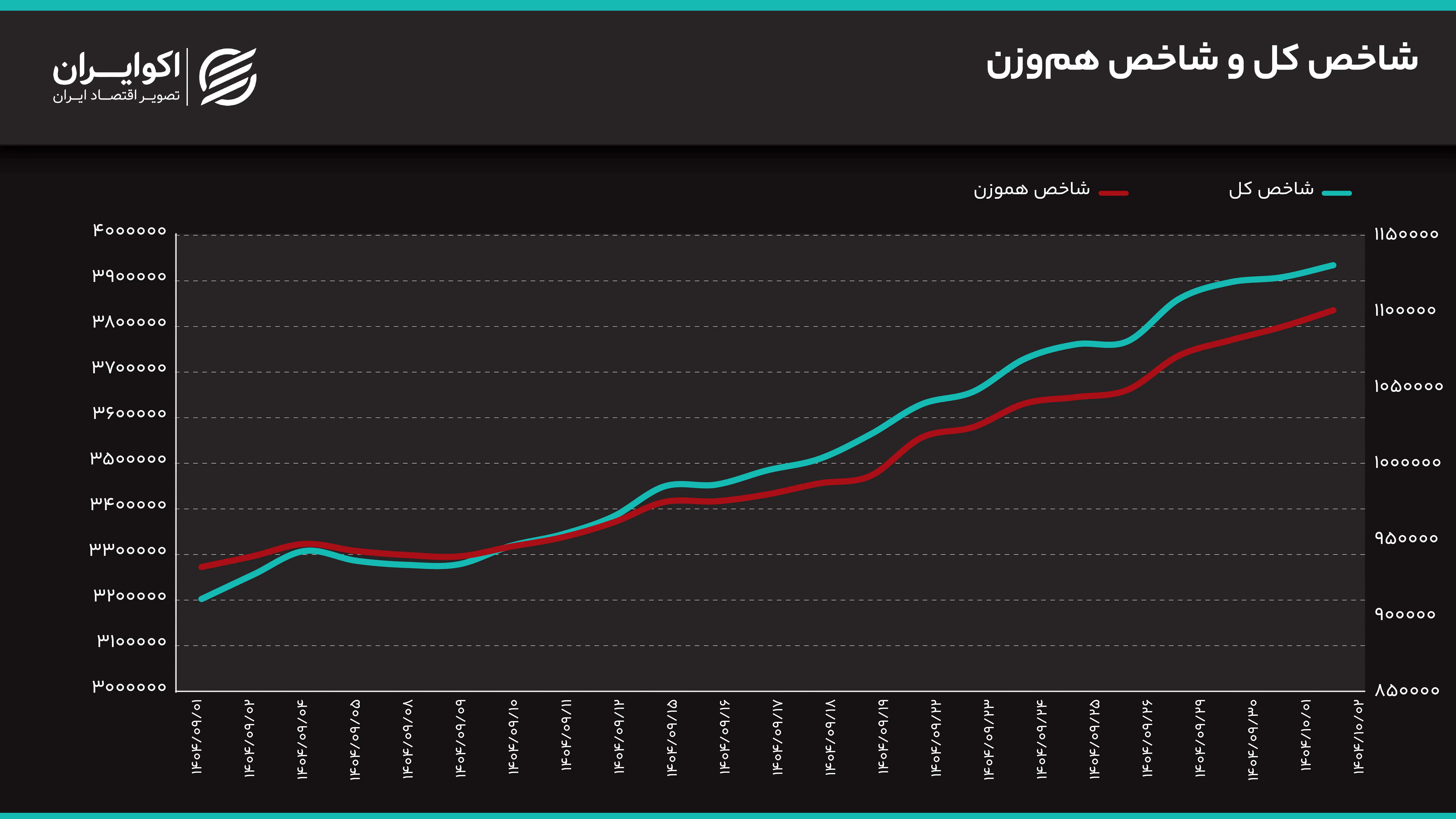 در مقابل، شاخص هموزن عملکرد قویتری از خود نشان داد و با ۱.۰۵ درصد رشد به سطح ۱,۱۰۱,۳۱۸ واحد رسید. این واگرایی رفتاری بار دیگر نشان داد که تمرکز تقاضا در بازار امروز، بیش از آنکه بر نمادهای بزرگ و شاخصساز باشد، بر سهام کوچکتر و متوسط متمرکز شده است.