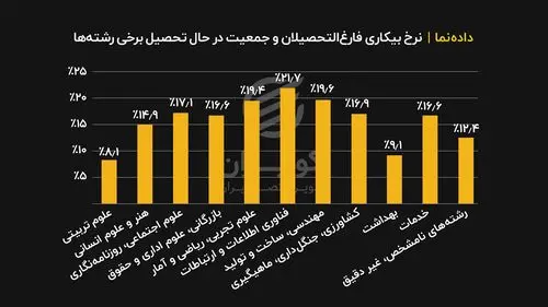 نرخ بیکاری فارغ التحصیلان و جمعیت در حال تحصیل برخی رشته ها