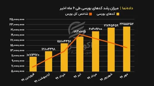 میزان کدهای بورسی فعال در مهرماه به ۲۲ میلیون ۱۵۵ هزار و ۲۵۲ رسید.