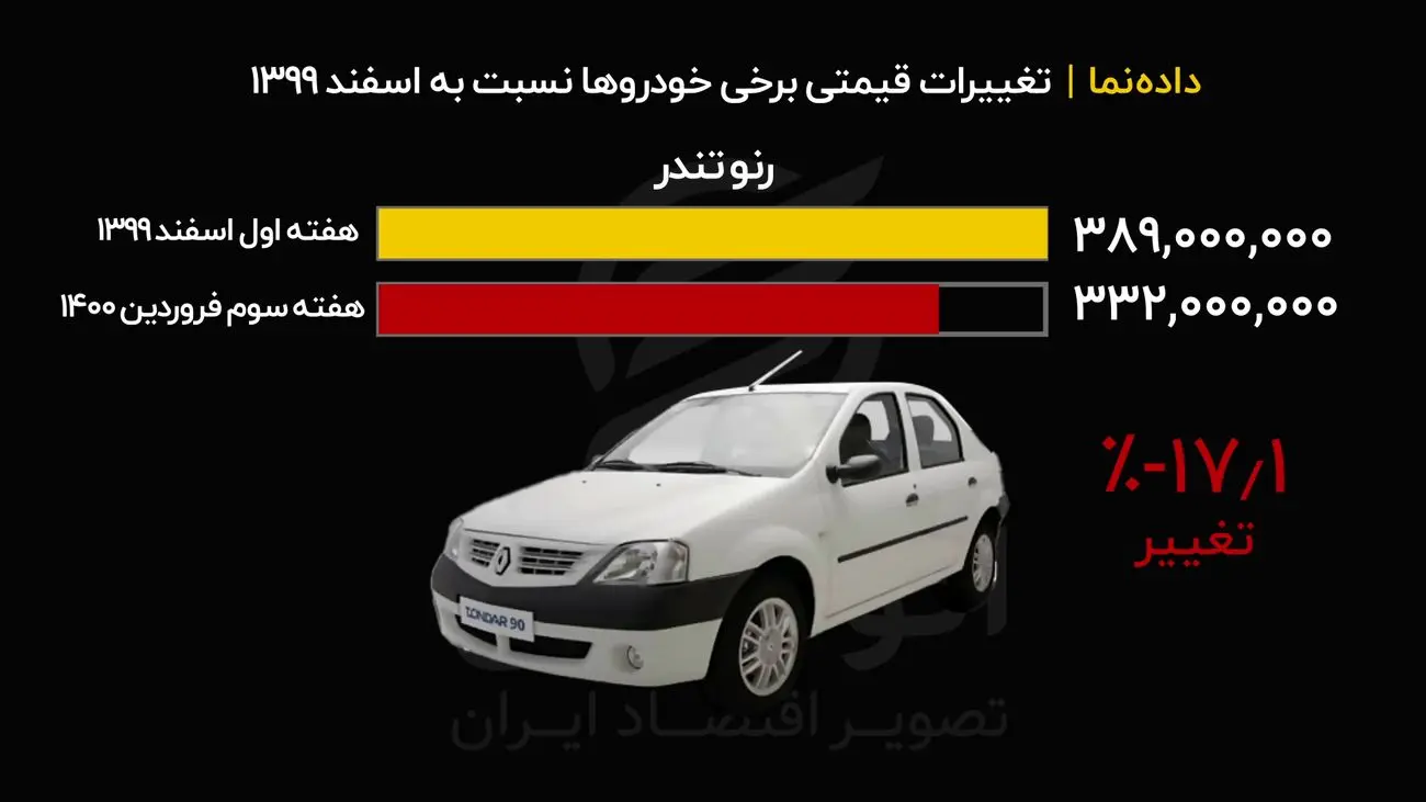 تغییرات قیمتی برخی خودروها نسبت به اسفند ۱۳۹۹