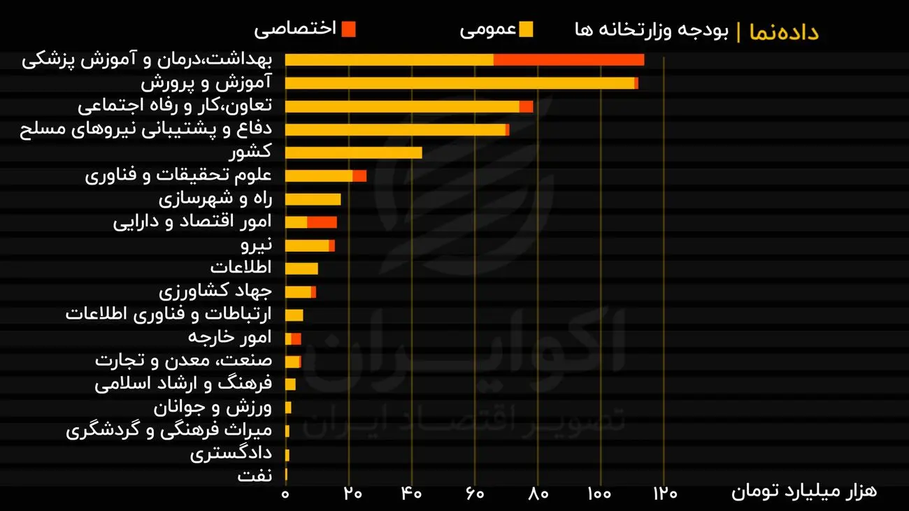 مقایسه بودجه وزارتخانه‌ها در جدول اعتبارات دستگاهی قانون بودجه سال ۱۴۰۰