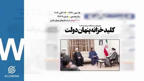 «کلید خزانه پنهان دولت» تیتر اصلی صفحه یک روزنامه دنیای اقتصاد در تاریخ 22 مهرماه 1398 است. دنیای اقتصاد همچنین سخنان مقام معظم رهبری در دانشگاه امام حسین (ع) را پوشش داده و برای آن تیتر «در مقابل آمریکا کوتاه نمی آییم» را انتخاب کرده است.