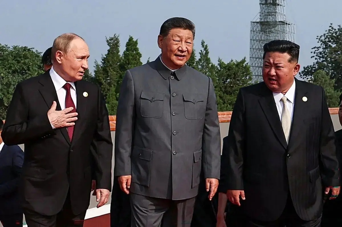 به گزارش بلومبرگ، دو روز بعد، او یک رژۀ عظیم نظامی برای گرامیداشت هشتادمین سالگرد پایان جنگ جهانی دوم برگزار کرد، با مهمانان افتخاری ولادیمیر پوتین، رئیس‌جمهور روسیه، و کیم جونگ‌اون، رهبر کرۀ شمالی. این حاکمان نه تنها در جستجوی جاودانگی با هم متحد هستند، بلکه از اساس، در دشمنی با جهانی که در آن واشنگتن و متحدانش قوانین آن را تعیین می‌کنند هم همسو هستند.