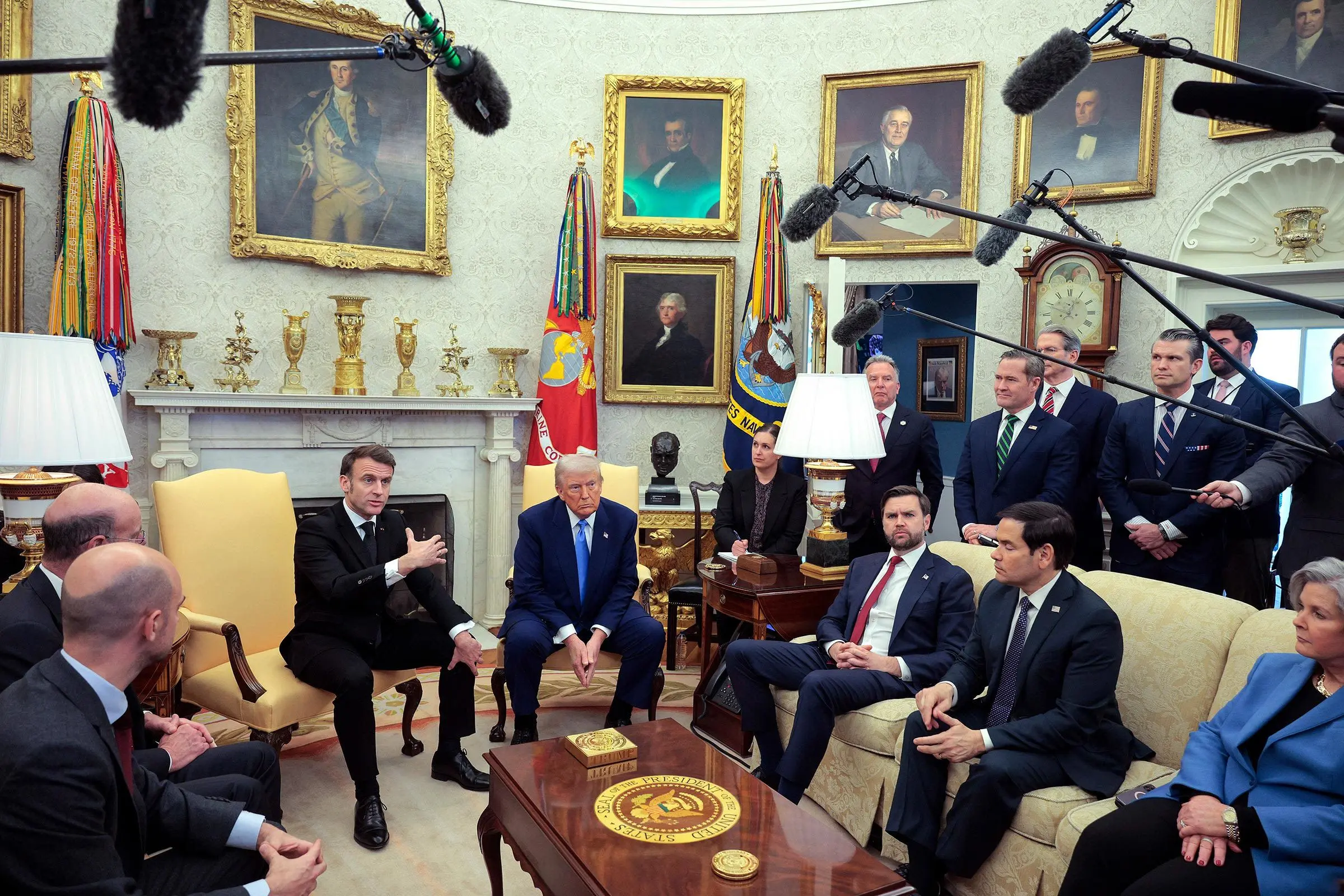 به گزارش رویترز، در جریان یک روز مذاکرات بین آنها، ترامپ و مکرون رابطهای دوستانه را که بر سالها روابط خوبشان استوار بود، نشان دادند. اما مکرون به وضوح اعلام کرد که در برخی مسائل کلیدی با ترامپ اختلاف نظر دارد. این دیدار همزمان با سومین سالگرد تهاجم روسیه به اوکراین در سال ۲۰۲۲ بود.