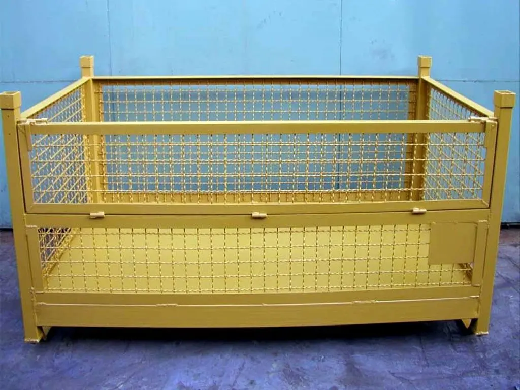 در طراحی این پالتها معمولاً دیوارهها را از توریهای فلزی میسازند. هر چقدر که توریها بیشتر باشند تا از فلز خاصی استفاده شده باشد، وزن و به دنبال آن قیمتش بیشتر خواهد شد. این نوع پالت معمولاً برای کالاهایی استفاده میشود که وزن کمتری دارند و احتمال فشار آوردن آنها به پالت پایین خواهد بود.
