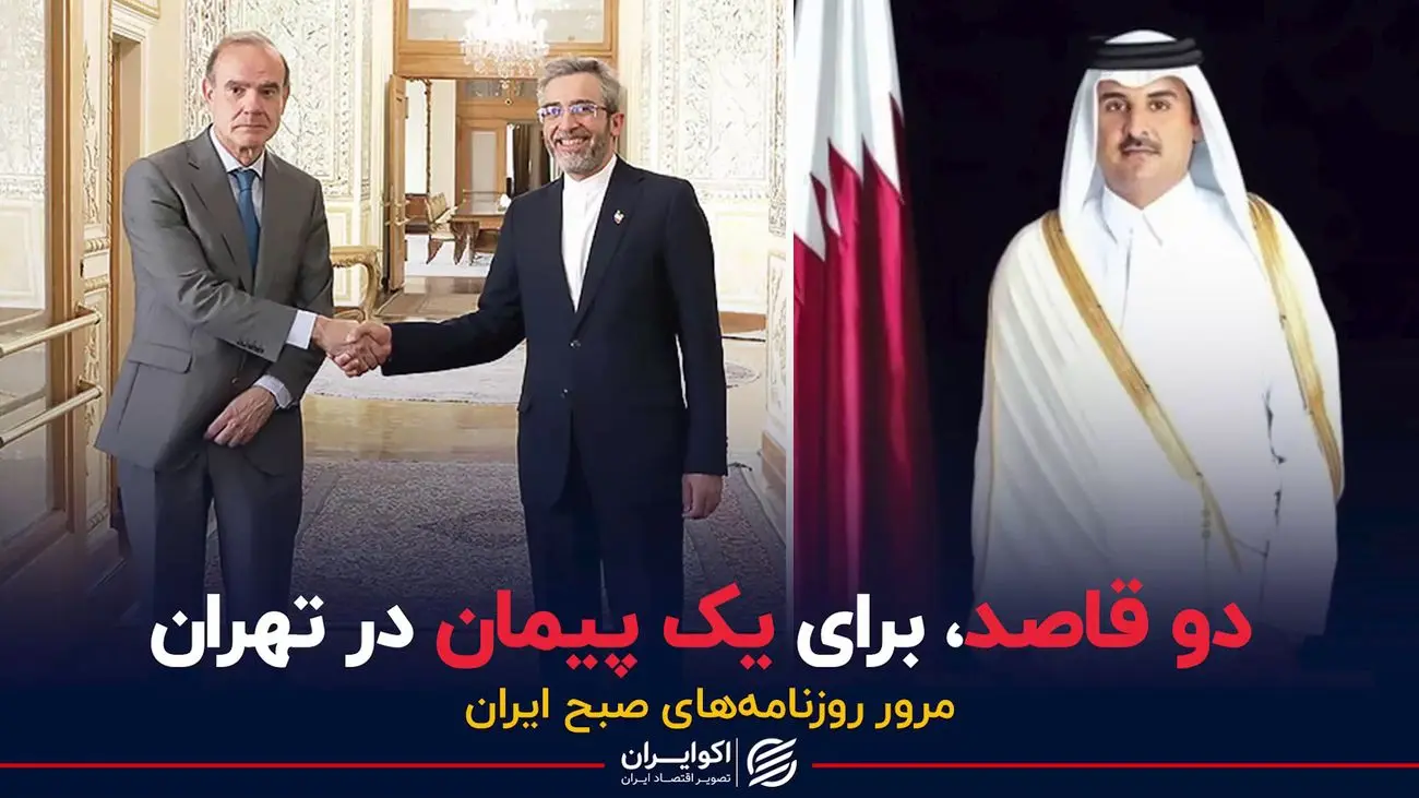 امروز از پرتکرارترین تیترهای روزنامهها، توجه به سفر انریکه مورا، مسئول سیاست خارجی اتحادیه اروپا و شیخ تمیم امیر قطر به ایران است.