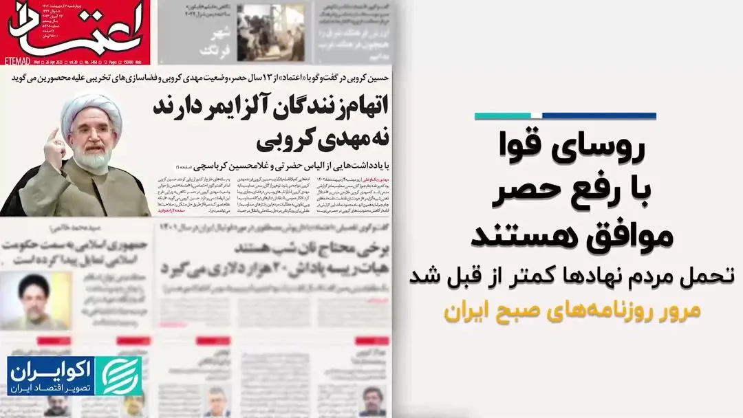 روزنامه اعتماد در مصاحبهای با حسین کروبی، روایتی از 13 سال حصر و برخی فضاسازیهای علیه محصورین را مطرح کرده است.