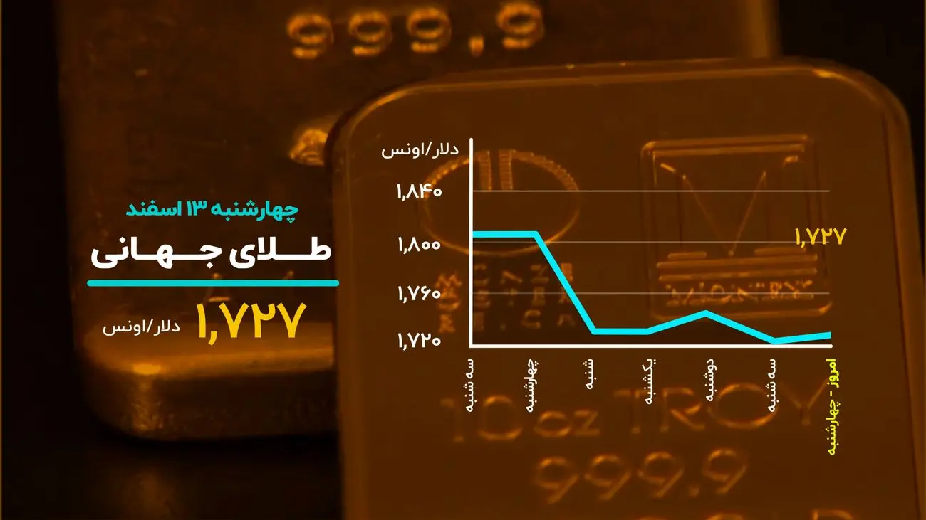 طلای جهانی امروز نیز برای ششمین روز در هفت روز گذشته کاهشی شد.