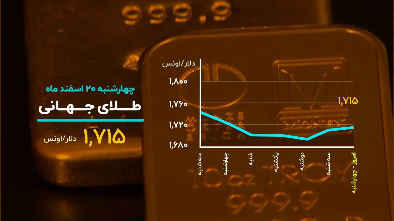 طلای جهانی امروز به ۱۷۱۵ دلار رسید و بیت کوین نیز همچنان در کانال ۵۴ هزار  دلار است.
